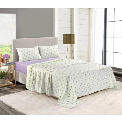 Kampala Hill 100% Brushed Cotton Flannelette Sheet Set Fitted Sheet, Flat Pillow Cases Purple King