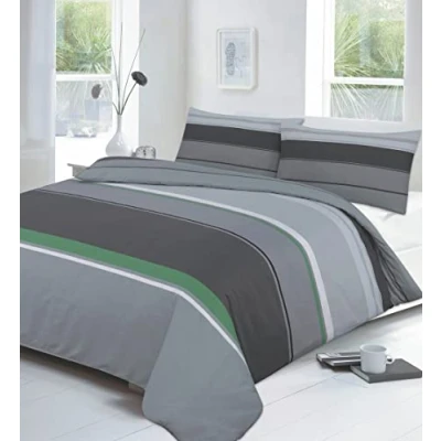 Kampala Hill Carter Green Double Duvet Cover Set Polycotton Striped Bedding