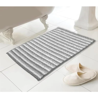 Kampala Hill Chenille Loop Striped Bath Mat Non Slip Absorbent Grey 46x76cm