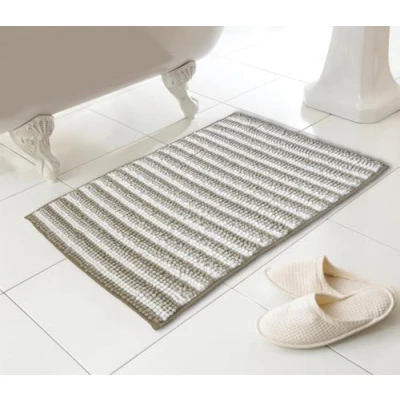 Kampala Hill Chenille Loop Striped Bath Mat Non Slip Absorbent Natural 46x76cm