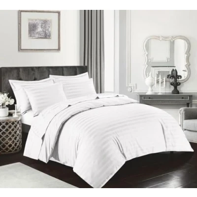 Kampala Hill Egyptian Cotton 400 Thread Count Super King Duvet Hotel Quality Cover Satin Stripe Bedding Set, White