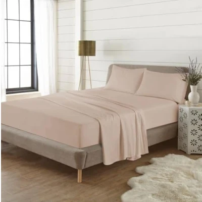 Kampala Hill Flannelette Plain Dye Brushed Cotton Sheet Set: Double Flat + Fitted Pillowcases Latte