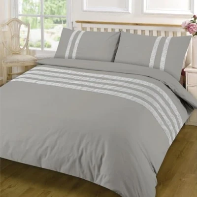 Kampala Hill Lace Dia Duvet Cover Set Luxury Super King Grey Bedding 100% Egyptian Cotton Percale 200 Thread Count