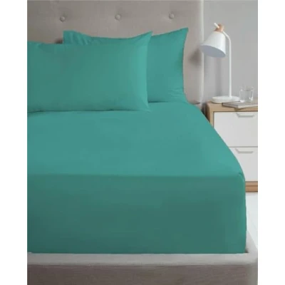 Kampala Hill Percale Single Fitted Sheet Extra Deep Bedding Teal