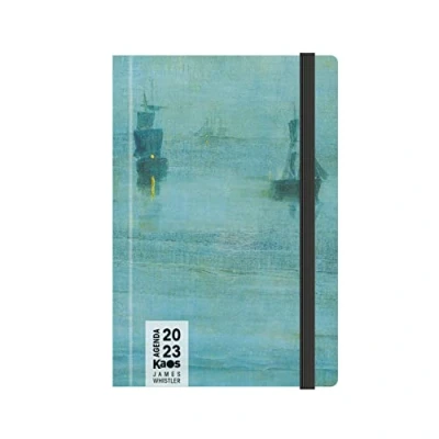 Kaos Daily planner format 12 x 18.6 cm medium, portable in bag, backpack, folder, suitcase. For use at home, school, as a Univerista diary or for your office work. Hardcover with round corner, printed in 4 colours with soft touch lamination. The rounded corners make the journal a perfect travel companion. Use it as a notebook and notebook With organiser and planner. Practical and elegant 8mm elastic band to keep your memories and appointments safe. The bookmark makes your notebook even more valuable and useful. Inside with elegant paper 80 g. Development of the dated part in 5 languages. Use in 2 languages (Italian and English) with copyright images, biographies and list of the most important museums in the world. Always take art with you: with the Kaos planners you have the beauty of the works of the great painters of history - Whistler - Night always with you