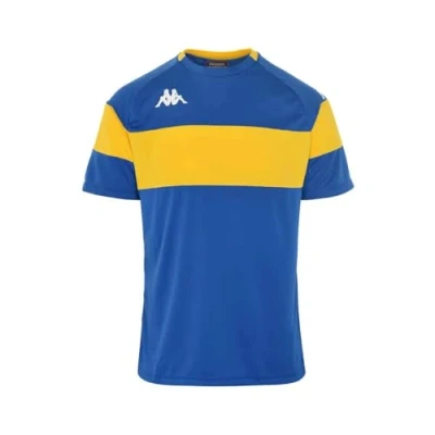 Style: Kappa design crew neck training shirt Material: 100% polyester for high wearing comfort Size: standard sizes for the perfect fit Colours: combination of blue and yellow for a stylish look Use: ideal for sports activities and training sessions