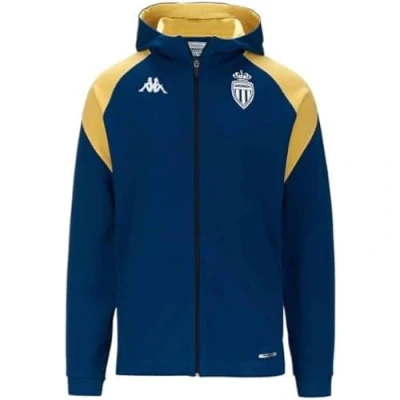 ARUFEOD AS MONACO BLUE CHILDREN'S SWEATSHIRT Official men's fabric jacket with a slim fit. Padded front and back, full zip front, zip pockets, cuffs and bottom edge with bow and inserts on sleeves, front and back. Omini logo on the chest and sleeves, Kappa lettering on the back, team crest on the chest and custom printed tape. Machine wash at 30°. 75% polyester, 25% cotton