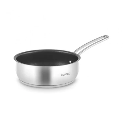 22cm diameter Perfect for preparing main dishes, sauces and side dishes for the whole family. HIGH QUALITY STEEL: Sturdy material that is both heat resistant and durable. Ideal for intensive cooking and frying. Induction compatible: compatible with all hob types including induction, gas, electric and ceramic. Even heat distribution: ensures optimal frying results without uneven burning. ERGONOMIC HANDLE: Provides a secure grip and allows comfortable handling.