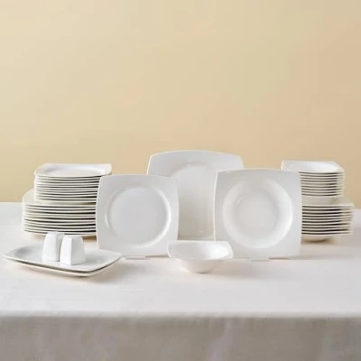 Modern Elegance: Karaca Jamie 52-Piece Bone China Dinner Set for 12 People, White, showcases a sleek and modern design that adds a touch of sophistication to any table setting. The classic white color scheme and minimalist aesthetic complement a variety of dining decor styles, making it perfect for both casual meals and formal gatherings. Comprehensive Set: This versatile dinner set includes everything you need to host memorable meals for family and friends. With 12 dinner plates, 12 pasta bowls, 12 dessert/side plates, 12 cereal/soup bowls, 2 additional plates, and practical extras like salt and pepper shakers, it provides ample serving options for any occasion. Premium Quality: Crafted from high-quality New Generation Bone China, this dinner set offers durability, strength, and a lightweight feel. The bone china material is renowned for its delicate appearance, yet it is surprisingly resilient, making it suitable for everyday use as well as special occasions. Microwave and Oven Safe: The Karaca Jamie dinner set is designed for convenience, allowing you to easily heat up or reheat your meals in the microwave or oven. This feature adds versatility to your dining experience, enabling you to serve piping hot dishes straight from the oven to the table. Dishwasher Safe: Cleaning up after meals is a breeze with this dishwasher-safe dinner set. Simply load the pieces into the dishwasher for quick and hassle-free cleanup, saving you time and effort so you can enjoy more quality time with your loved ones., Manufacturer: KARACA