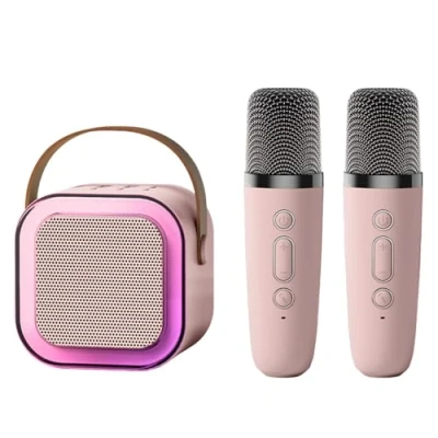 Superior Sound Quality: Experience high-performance optimized sound with the built-in 5W speaker of this Bluetooth karaoke machine. Enjoy precise sound and moderate volume for an immersive karaoke experience. Long Playback Time: With the latest Bluetooth 5.0 chip, this mini karaoke machine ensures instant pairing and stable transmission up to 32ft. It also supports Micro TF card, Flash USB, and AUX-in connectivity, making it compatible with various devices. Perfect for small parties, schools, churches, and gyms. Funny Voice Change & LED Lights: Create an immersive karaoke experience with colorful disco lights and 5 lighting modes. This compact karaoke machine brings excitement and energy to any party or gathering. Keep your guests entertained and engaged all night long. Connect & Compatible: Have fun with duets and dance-offs using the two kids microphones and 4 magic voice effects (original, KTV, monster, and baby voice). The advanced active noise reduction technology and professional DSP audio processor ensure perfect sound quality. Switch to KTV mode with a double press of the EFF button. Perfect Gift for Children: Show your loved ones that you care with this karaoke machine for kids. It's a unique and enjoyable gift that can be given on birthdays, Valentine's Day, or other important celebrations. Let them enjoy the fun of singing and create lasting memories.