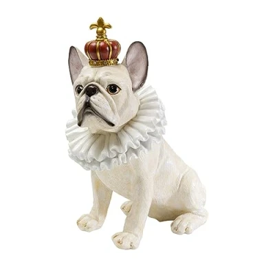 Charming Design: White dog figurine with crown and ruffled collar, featuring numerous lifelike details that make it a playful and unique decoration for any home Handcrafted Excellence: Made from durable polyresin and hand-painted, each piece is carefully crafted to ensure a high-quality finish and attention to detail Perfect Gift Idea: An original and delightful gift for dog lovers, especially Boston Terrier owners, bringing a charming touch to any occasion Unique Home Accent: This whimsical dog figure adds personality and humor to your living space, making it a fun and eye-catching addition to any room Ideal for Dog Enthusiasts: A must-have decor item for dog lovers and decoration enthusiasts who appreciate unique, high-quality, and playful home accents