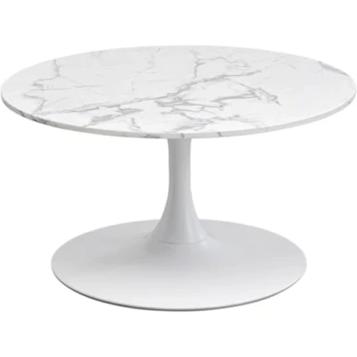 Design & Style: Round white coffee table with tulip-shaped base delivering an elegant and versatile all-rounder for living room and bedroom interiors Materials & Finish: Marble-look laminated top on durable MDF ensures easy maintenance while creating a refined, stylish surface for everyday use Timeless Appeal: Central tulip-shaped base offers a classic silhouette that pairs with various furniture styles and modern décor themes Functional Use: Ideal as a coffee or side table for drinks, snacks, books, or decorative accents while maintaining a sleek and stylish profile Series Compatibility: Part of the Schickeria series allowing coordinated styling with matching side and dining tables to achieve a cohesive home interior