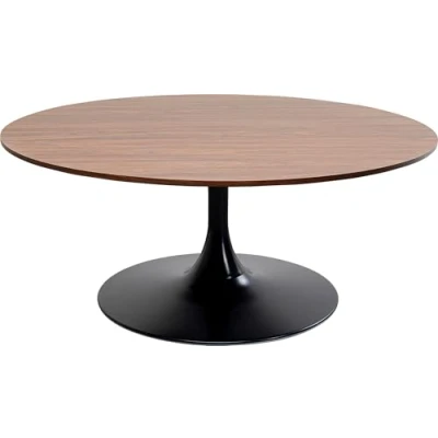Kare Design Coffee Table Schickeria Walnut, Brown, Black, Wooden Look, Steel Base, Diamter 110cm, Modern, Round Sofa Side Table, Decorative Home Accessories, Room Decor for Living