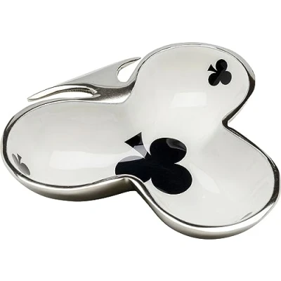Stylish decorative bowl: clubs card design High-quality material: nickel-plated aluminium Compact size: 17 x 16 cm, ideal for any decor Care instructions: not microwave safe, not dishwasher safe DECORATIONS AND NOT FOOD SAFE Perfect for decoration purposes