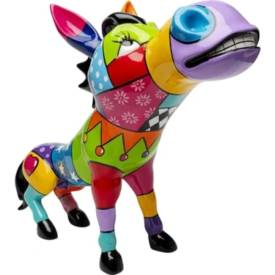 Comic Inspiration: Large multicolor donkey figurine made of resin adds a playful and artistic statement to living rooms, game rooms or hobby spaces with striking bold colors Hand Painted: Carefully finished by hand, highlighting surface structure and detail for expressive display that enhances interior storytelling Statement Piece: Bold design draws immediate attention, making it great for themed rooms, creative studios or lively home environments Creative Flair: Combines strong shapes with colorful accents to enrich shelves, floor spaces and sideboards while brightening visual surroundings Fun Décor: A lively choice for fans of playful art objects, delivering expressive character and uplifting mood within personal or shared environments