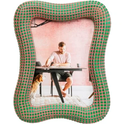 Unique Hand-Painted Design: The Picture Frame Wavy Green is hand-painted, ensuring each piece is a one-of-a-kind work of art that adds personality to your décor Vibrant Green Color: Featuring vibrant green waves, this frame brings a fresh and modern touch to any bedroom or living room, enhancing the atmosphere of your space Versatile Display Options: Designed for both horizontal and vertical display, this frame can be placed on a surface or mounted on the wall for maximum flexibility Artistic and Stylish Appeal: The distinctive wavy design creates an eye-catching, artistic statement piece that elevates your home décor with style Perfect for Cherished Memories: Ideal for showcasing your favorite photos, this frame combines functionality and beauty to enhance the visual appeal of any room