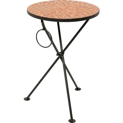 Artistic tabletop: Round side table measuring 53 x 35 x 35 cm with a striking mosaic glass surface in orange that shimmers beautifully depending on the light Stable frame: Black foldable steel base creates a strong contrast to the colorful mosaic while ensuring durability and reliable stability in everyday use Flexible placement: Functions as a stylish coffee table next to the sofa a compact storage option in the hallway or an extravagant bedside table in the bedroom Practical design: Foldable construction allows the table to be quickly set up or stored away providing maximum flexibility and space saving convenience Decorative accent: Combines artistic craftsmanship with functional use bringing color texture and a sophisticated touch to any living space