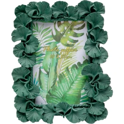 Artistic Design: Picture frame in green with a detailed 3D effect created by stylised ginkgo leaves adding visual depth and highlighting treasured memories in any room Symbolic Meaning: Ginkgo leaf border representing friendship love and long life giving personal photos or art prints an added emotional value and thoughtful decorative touch High-Quality Craft: Made from dimensionally stable polyresin and carefully handcrafted with rich detailing ensuring durability while showcasing intricate leaf structures with precision Decorative Versatility: Suitable for art prints family photos or special moments allowing you to display meaningful images in a frame that complements both classic and contemporary interiors Striking Accent: Green finish with sculptural leaf elements creating a eye-catching highlight that enhances shelves sideboards or wall displays with a refined decorative presence