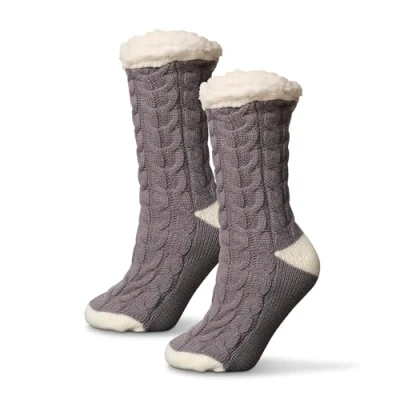 Karen Neuburger Women's Fleece Lined Knit Socks Fuzzy, Quick Silver, One Size