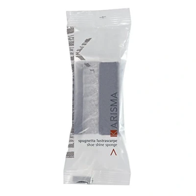 Shoe shine sponge flow pack For an easy cleaning and shine of the shoe. Handy packaging, satin transparent flow pack. The Karisma line with a refined but simple style, is the right solution for any type of hotel room. Simple but attractive, Karisma is ideal to meet all needs of practicality and comfort thanks to the single wrapped items and flow packs.