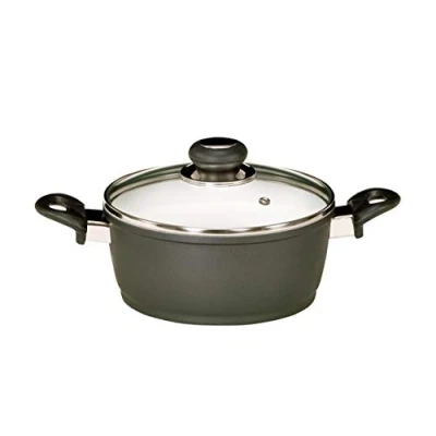Karl Kruger Oslo Aluguss Series Meat Pot with Glass Lid, 1.3 l, Metal, Black, Litre