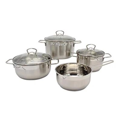 Made of stainless steel Contains roasting pan with glass lid 1.8 l, meat pot with glass lid 1.6 l and 2.8 l, saucepan without glass lid 1.1 l Glass lid with stainless steel protection edge and ventilation hole Set with satin decoration Suitable for all types of cookers, also for induction cooking ranges