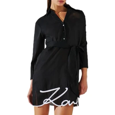 The Karl Dna Signature Beach Dress In Black From Karl Lagerfeld Is A Must-Have For Sun-Soaked Days. Features Branded Buttons, A Cinching Self-Tie Belt, And The Distinctive Karl Signature Embroidery At The Hem. Designed For Beachside Elegance, All-Day Ease, And Confident Summer Vibes. Made From 100% Cotton For Lightweight Durability And A Premium Feel. Responsibly Designed In China, This Item Showcases The Brand'S Commitment To Timeless Appeal And Quality Craftsmanship.