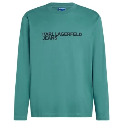 KARL LAGERFELD JEANS Men's Regular Long Sleeve Essential Logo Tee Fit, Blue, XL