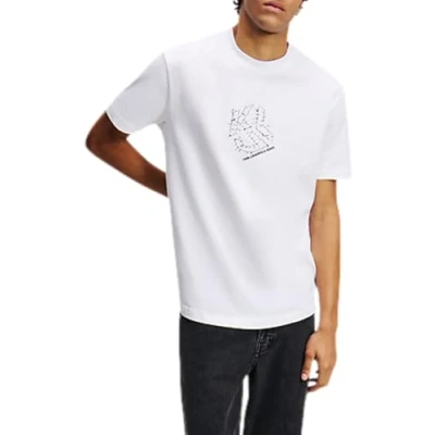 KARL LAGERFELD JEANS, Men's, Regular Short Sleeve Curved Hem Shibori Tee, Fit, White, S