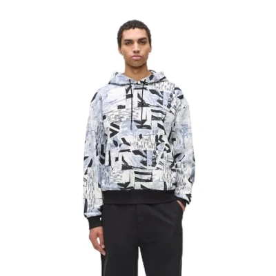Karl Lagerfeld Jeans Relaxed Allover Monogram Hoodie, Men's, Size: Medium, Urban texture aop