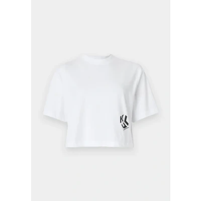 Karl Lagerfeld Jeans Cropped Monogram TEE Basic Tshirt white Sale at Zalando UK | Outer fabric material: 50% cotton, 50% polyester | Sale order at Zalando UK! Size: XS. Color: White. Pattern: plain.