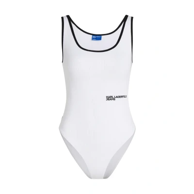 Karl Lagerfeld Jeans Ribbed Bodysuit TOP Top white Sale at Zalando UK | Outer fabric material: 95% cotton, 5% elastane | Sale order at Zalando UK! Size: XL. Color: White.