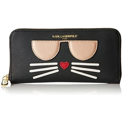 KARL LAGERFELD Paris Hermine Continental Zip Around Wallet, Deep BLK/Gold, One Size