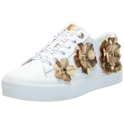 KARL LAGERFELD Women's Georgia Lace Up Sneaker, Bright White/Gold, 6.5 UK