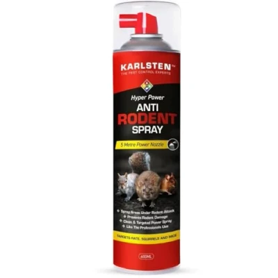 5-Metre Power Distance Nozzle for Rodent-Prone Areas: Designed for applying peppermint scent into spaces commonly used by rats and mice, such as loft edges, wall gaps, floor voids, storage corners and access points. Allows treatment from a distance with controlled direction. Suitable for Homes, Sheds & Workspaces: Use in houses, garages, barns, sheds, vehicles, workshops and storage rooms—anywhere rats and mice are seen moving through or may enter. Designed not to stain when used as directed. For Cabling, Vehicles & Farm Machinery: Rats and mice are known to explore wiring looms, engine bays, insulation and machinery housings. Applying aroma to these areas helps create surroundings that rats and mice may choose to avoid. Strong Peppermint Aroma: Formulated with peppermint oil for a noticeable scent. Rats and mice have a highly sensitive sense of smell, and strong aromatic environments may feel unfamiliar or less comfortable to them. Large 600ml Can for Multiple Application Points: One container provides widespread scent placement across several structures or machinery areas. Reapply depending on airflow, outdoor exposure and cleaning routines. Protect Car Wiring & Machinery : The 600ml aerosol with a precision power nozzle is designed to effectively protect car wiring from rodent damage, creating a long-lasting barrier that disrupts pheromone trails and rodents from chewing on cables, ensuring the longevity and functionality of your vehicle’s electrical systems. Ideal for cars, trucks, and other vehicles with exposed wiring. Effortless Long-Range Reach: With a powerful 5-metre spray, the Karlsten Hyper Power 600ml Peppermint Aerosol eliminates the need to bend down, making pest and odor removal quick and hassle-free.