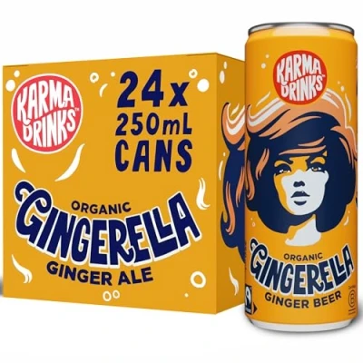 Karma Drinks Gingerella Ginger Ale (24 x 250ml Cans), Natural Ingredients, FairTrade, Gluten Free, Vegan Friendly, Delicious Soft Drink, Carbonated Fizzy Organic, No GMO