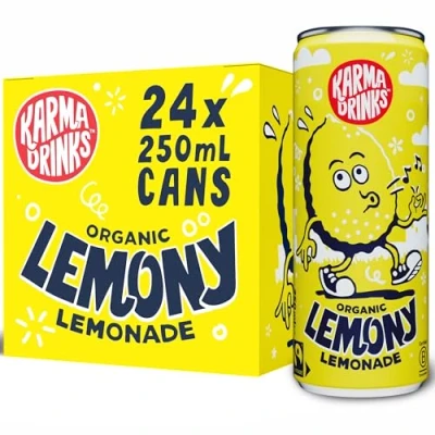 Karma Drinks Lemony Lemonade (24 x 250ml Cans), Natural Ingredients, Fairtrade, Gluten Free, Vegan Friendly, Delicious Soft Drink, Carbonated Fizzy Organic, No GMO