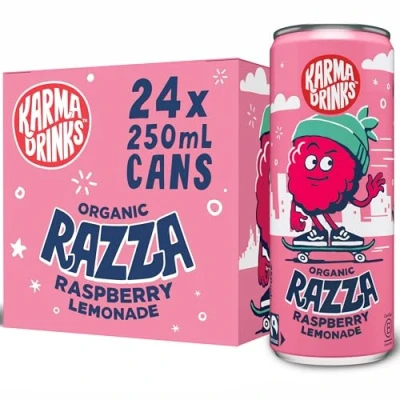 ππ₯πππ§ π§ππ¦π§π: Razza is fruity, fizzy and Fairtrade, and perfect for a feel-good moment of delicious refreshment. He gets his bold and brilliant flavour from a mix of natural raspberry flavour, lemon juice and Fairtrade organic cane sugar - so he tastes good and does good too. ππ’π₯ π£ππ’π£ππ: Our mission is to become the worldβs most ethical soft drink. Weβre proudly certified Fairtrade, supporting cola nut growing communities in Sierra Leone through the Karma Foundation to help drive social and economic independence. ππ’π₯ π£πππ‘ππ§: Proudly the top-scoring B-Corp soft drink in the country and certified organic by the Soil Association. No nasty or hard-to-pronounce ingredients, just drinks that are good for you and the planet. πππ₯π π π§πͺππ¦π§: Your favourite flavours made with real organic and Fairtrade ingredients, crafted with care and purpose for a bold, refreshing taste that does good. π©ππ₯πππ§π¬: Discover Karma Cola, Gingerella, Lemony, Orangeade, and Razza, plus Karma Cola Sugar Free. All drinks are vegan, gluten-free, non-GMO, and available in convenient multipacks.