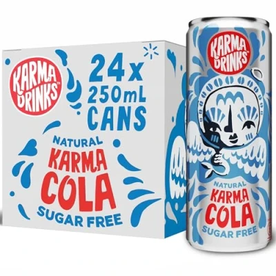 Karma Drinks Sugar Free Cola (24 x 250ml Cans), Natural Ingredients, FairTrade, Gluten Free, Vegan Friendly, Delicious Soft Drink, Carbonated Fizzy No GMO