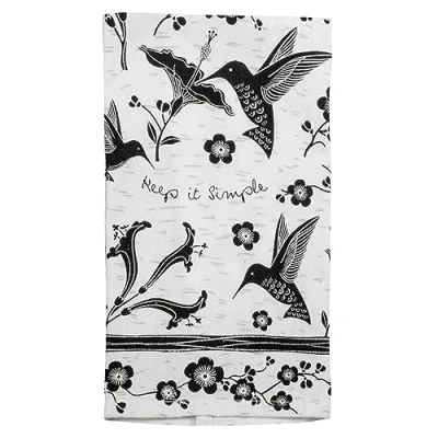 Karma KA1019 Boho Black and White Tea Towels, Cotton, Hummingbird