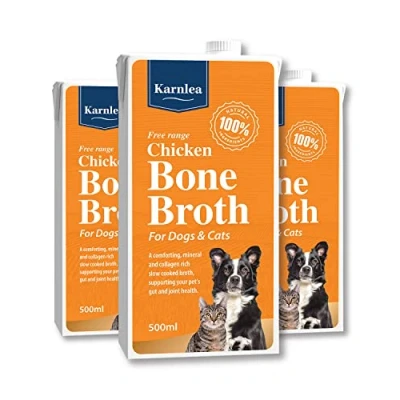Karnlea Pets Chicken Bone Broth Free Range, 3x 500ml 100% Real & Natural Liquid for Cats Dogs High in Collagen Protein Healthy Joints, Gut, Digestion, Skin Sickness Recovery