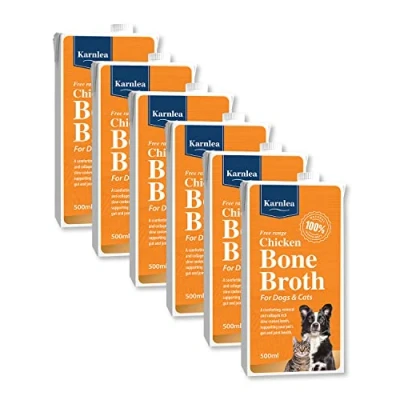 Karnlea Pets Chicken Bone Broth Free Range, 6x 500ml 100% Real & Natural Liquid for Cats Dogs High in Collagen Protein Healthy Joints, Gut, Digestion, Skin Sickness Recovery