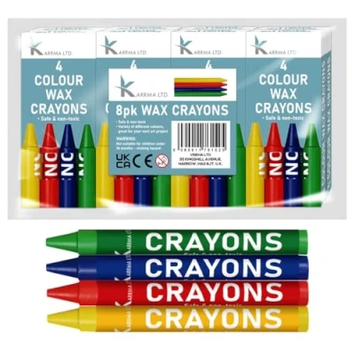 Crayons for Children - Colouring crayons come in 4 different colours with Pair of each colour. A range of colour shades included: Blue, Green, Red and Yellow. These non toxic crayons are perfect to help kids develop their colouring skills, their creativity, their concentration, and encourages them to recognise colours. With a unique, extra long size and shape, KARRMA Wax Crayons are really easy to use for kids of all ages to hold and use. Big Crayons are perfect for your little ones who are just starting to grasp and draw with crayons. Ideal to help kids develop school projects, imagination, creativity, color exploration and for a Drawing books. This is the perfect gift for any occasion, from birthdays to holidays, Christmas. Give your child the perfect crayon set to help him realize his childhood dream of becoming a little artist., Manufacturer: Karrma Ltd.