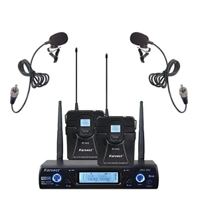 Set of 2 Clip microphones perfect for lectures, speech and recordings A good choice for aerobics, dance, lectures, speeches, singing etc Choose from 16 different frequencies Complete with microphones, receiver, batteries and power supply