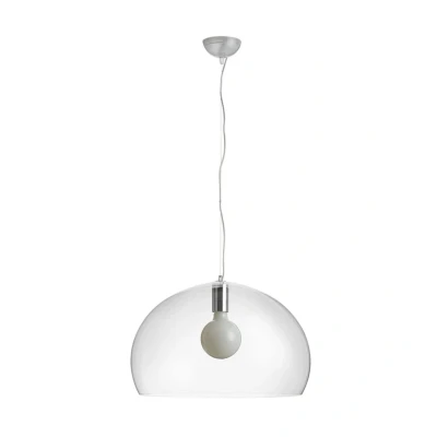 The FL/Y pendant in Crystal is made from transparent methacrylate in all the colours of the rainbow. This material has a certain airiness to it and uses colours that remind you of soap bubbles reflecting light into the room. Kartell recommends that you hang up the lamp before removing the protective film to minimise the risk of scratches. You can watch instructional video about installation You should also be aware that the FL/Y pendant is manufactured as a single piece and the manufacturing process can leave small marks on the product.