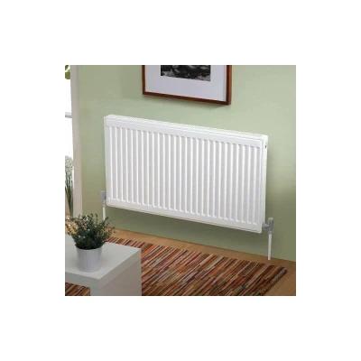 General description Double panel double convector radiators, also known as Type 22 radiators, are designed for superior heat output while maintaining a slim profile. With two sets of convectors situated between two panels, these radiators provide an extensive surface area for efficient heating, making them ideal for larger rooms. They come with pre-fitted side panels and a top grill, offering an elegant finish without compromising heat output. Technical specifications Height: 600mm Width: 1100mm BTU Output (Delta 50): 6886 Panel Configuration: Double Panel Type: Double Panel Double Convector Colour: White Orientation: Horizontal Model Number: D611K Brand: Kartell Dimensions: 110cm x 11cm x 60cm Installation Included with the radiator are heavy-duty L-shaped fixing brackets that bolt directly to the wall. The radiator hangs on these brackets using pre-fitted holders on the back. Standard G1/2 inch plumbing connections ensure easy installation in your home. Other information Conforms