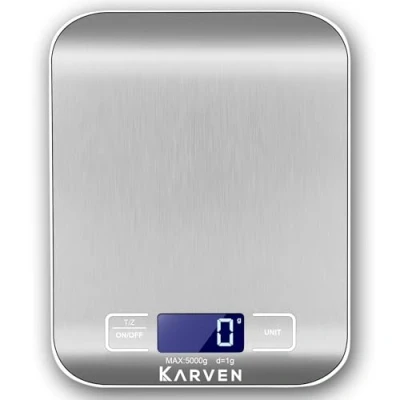 [High-Precision Digital Scales] Essential for cooking, baking, and parcel weighing, these kitchen scales offer a 5kg/11lb capacity with a 1g/0.05oz division. They deliver accurate results for various items, including food, coffee, grains, and more. [Versatile and User-Friendly] These scales provide swift conversions between g, ml, oz, and lb:oz, catering to all your culinary needs. The clear, backlit LCD display shows low battery and overload indicators, with an auto-off function for energy efficiency. [Slim, Portable Design] Ultra-slim and durable, these stainless steel scales are perfect for any kitchen or travel scenario. Ideal for measuring food, herbs, jewelry, and other items, they feature an easy-to-clean surface. [Tare Functionality for Accuracy] The tare and auto-zero functions allow for easy measuring in various containers, from bowls to plates. These features are crucial for precise portion control, calorie counting, and health-conscious cooking. [Robust and Hygienic] Constructed from food-grade stainless steel, these scales resist fingerprints and food residue, ensuring hygienic use. Our Customer Experience team is ready to assist with any queries.