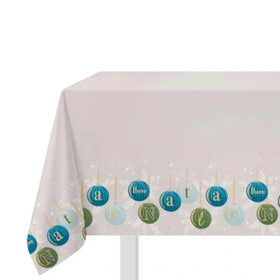 Cover your Christmas table with this pretty white tablecloth decorated with a border of Christmas baubles. The green and teal details and greeting message make them the perfect accessory for a cheerful, modern and colourful table setting during the holidays. The dimensions 140 x 180 cm are suitable for tables with 6 seats. 30 °C wash in the washing machine, it looks like new again and the colours do not fade., Weight: 1.3007273458 pounds, Manufacturer: KASANOVA