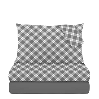 Freshness and softness in every season. Let yourself be seduced by this pure cotton double bed set, ideal for adding a touch of style to your bedroom and for relaxing in a soft embrace, ideal for relaxing in complete comfort. The double bed consists of 1 flat sheet 240x280 cm, 1 fitted sheet 180x200xh25 cm and 2 pillowcases 52x82xh15 cm. It can be washed in the washing machine at a low spin speed. Do not tumble dry, iron at maximum 110°.