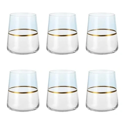 Give your table a touch of timeless elegance with this set of 410ml clear glasses. Thanks to the sophisticated gold central ring, they are perfect for brightening up any occasion, from formal dinners to cozy moments.